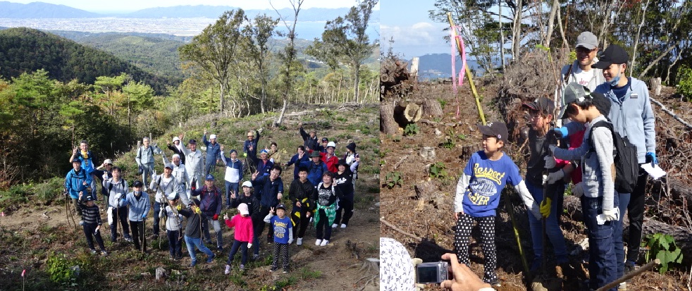 松江市立来待小学校の先生や生徒さん地域住民の方々、50名ほどの参加を得て植樹イベントを開催しました。