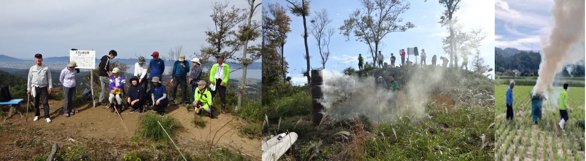 登頂を知らせる狼煙(のろし)を麓の農村生活改善センターへ相互で上げるイベントも行いました。